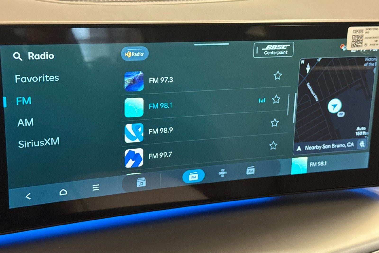- Radio: AM/FM/SiriusXM/HD Audio System -inc: 12.3" navigation, Bose premium audio w/14 speakers, wireless Android Auto and Apple CarPlay, Blue Link connected car system, vehicle Wi-Fi hotspot, USB input, Bluetooth® multiple device connection, Over-the-Air (OTA) Controller ECU, map/multimedia software update capability, e-active sound design and active noise control