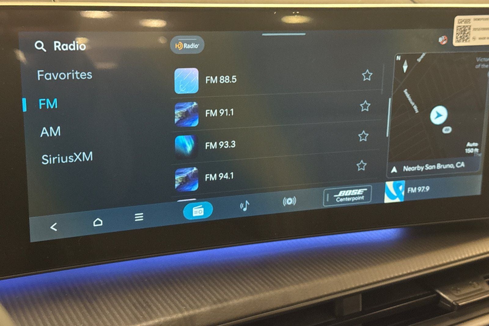 - Radio: AM/FM/HD Bose Premium Audio System -inc: 12 speakers including subwoofer, external amplifier, 12.3" wide touchscreen, wireless Apple CarPlay and Android Auto, Bluetooth® hands-free w/wireless audio streaming, dynamic voice recognition, USB connectivity, SiriusXM, wifi hotspot, Blue Link connected car system, navigation system including traffic flow w/incident data via HD Radio (HERE), OTA updates and rear seat quiet mode