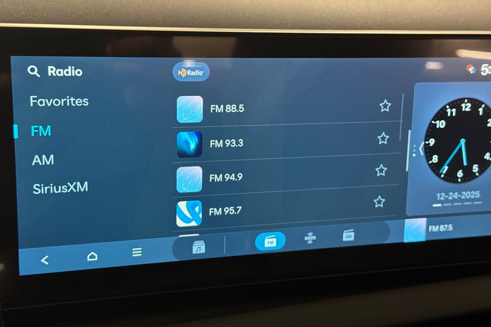 - Radio: AM/FM/HD Audio System -inc: 12.3" color touchscreen display, 6 speakers, SiriusXM satellite radio system (3-month trial subscription), wireless Apple CarPlay and Android Auto integration, controller OTA update capability, Blue Link connected car system and USB connectivity